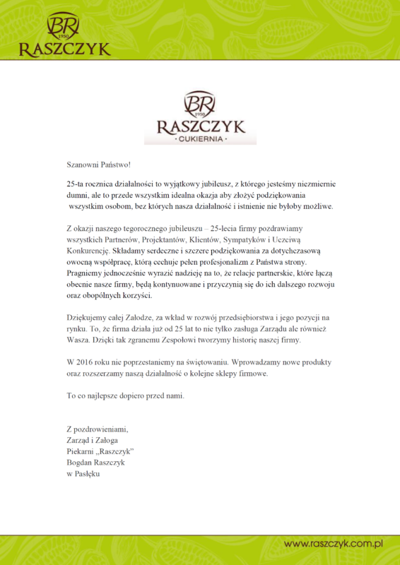 22 cze Raszczyk radzi Dzień Ojca 22 czerwca, 2016 By admin Z okazji zbliżającego się 23 czerwca Dnia Ojca ;) zapraszamy do naszych punktów firmowych po pyszny tort truskawkowy ;) * dostępny w r...Continue reading
